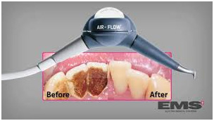 то новый метод чистки зубов. С его помощью безболезненно удаляется зубной налет, никотиновый налет, отложения танина и другие виды отложений. Действует по принципу давления струи воздуха, воды и мелких частиц бикарбоната натрия